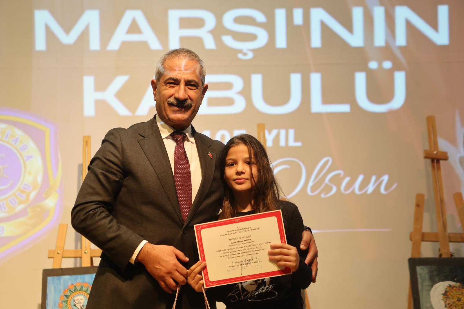 Belediye Başkanımız Ali Ercan Akpolat da yaptığı konuşmada İstiklal Marşı’nın taşıdığı anlam ve mirasa değinerek, emekleri ve duyarlılıkları için öğrencilerimizi tebrik etti.